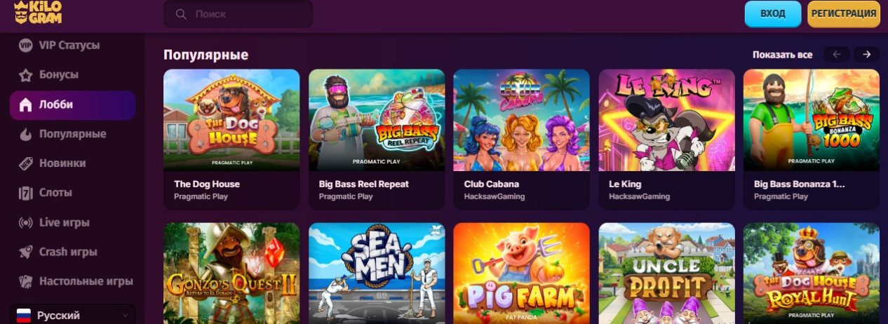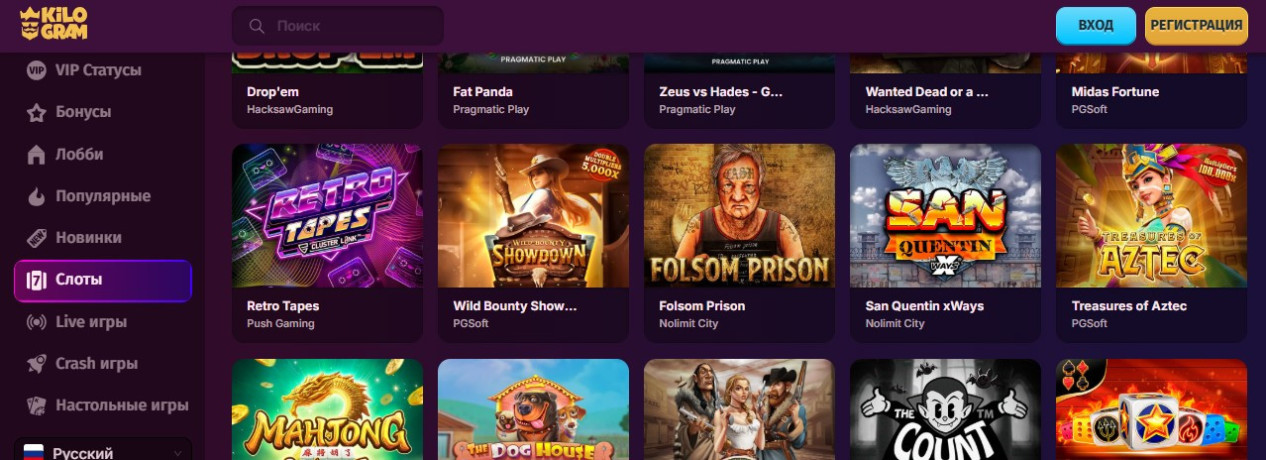 В онлайн казино Kilogram доступны популярные слоты: