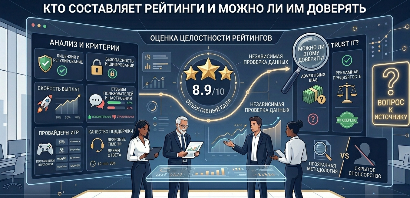 Важный момент — прозрачность методики. Надежные ресурсы объясняют, по каким критериям формируется рейтинг: лицензия, выплаты, бонусы, отзывы игроков. Если такой информации нет, скорее всего, перед вами рекламная подборка.