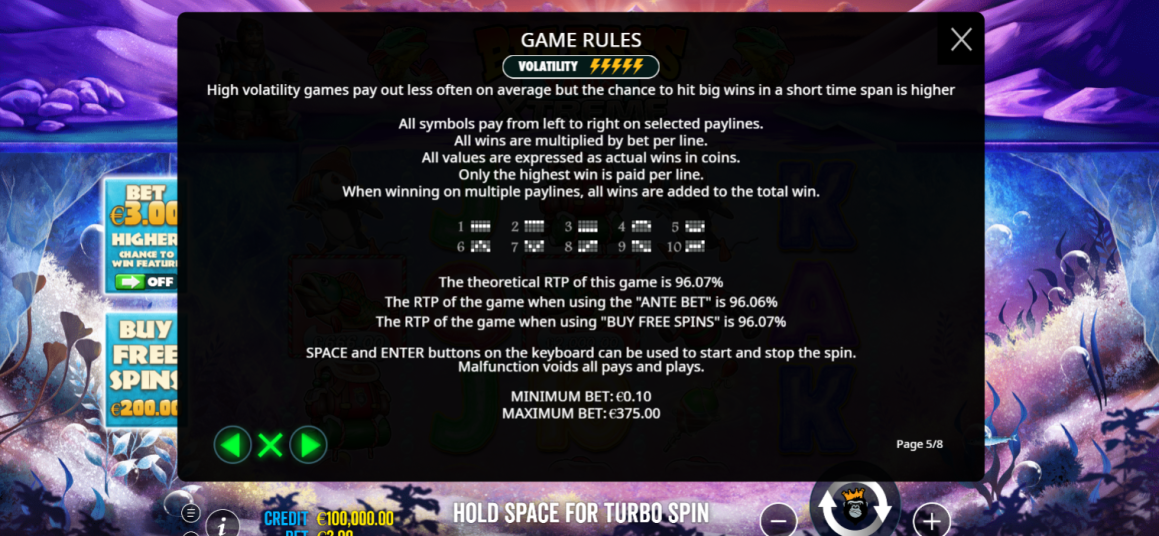 Каждый вышеуказанный параметр, может повлиять на общий выигрыш игрока.